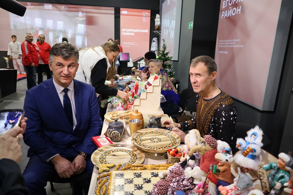 Мероприятие посетили почётные гости: депутат Государственной Думы Тутова Лариса Николаевна, заместитель министра образования Ростовской области Фёдоров Сергей Евгеньевич, заместитель министра экономического развития Ростовской области Попелнуха Ольга Викторовна. Для них экскурсию по выставке провела замглавы Егорлыкского района Дробышева Валентина Николаевна.