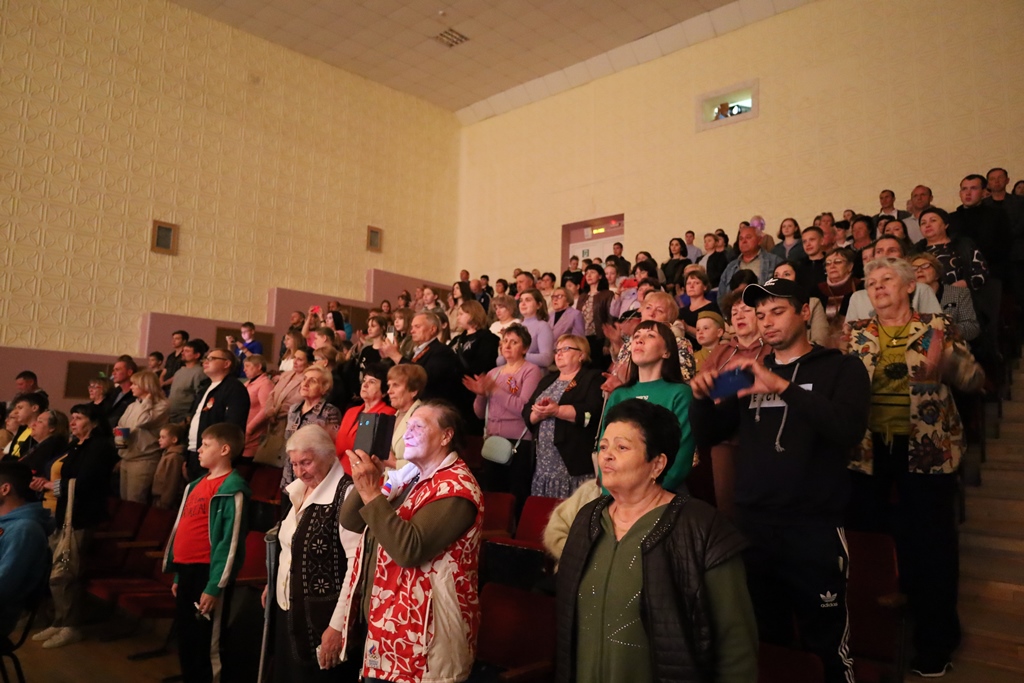 В зале состоялась театрализованная концертная программа «Победа в наших сердцах». Зрителям были предоставлены небольшие театрализованные сценки, посвящённые Дню Победы: «Фотография», «Лётчики», «Письмо солдату», «Бойцы зоны СВО». На сцене выступали полюбившиеся хореографические коллективы, вокальные коллективы и солисты исполнили песни военных лет, зал поддерживал и подпевал исполнителям.