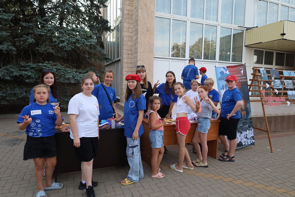 Параллельно на площади работали ребята из Общероссийского общественно-государственного движения детей и молодежи «Движение первых» (руководитель Иванова Н.В.) Желающие могли подойти поучаствовать в акции и посмотреть фотовыставку «Ангелы Донбасса».