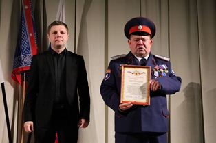 С поздравлением к дружинникам обратился заместитель главы Администрации Егорлыкского района Максим Александрович Строков. За большой личный вклад в дело обеспечения охраны общественного порядка и общественной безопасности при проведении мероприятий, за проявление милосердия и бескорыстия казакам-дружинникам были вручены благодарственные письма, подписанные главой Администрации Егорлыкского района Анатолием Анатольевичем Абрамовым.